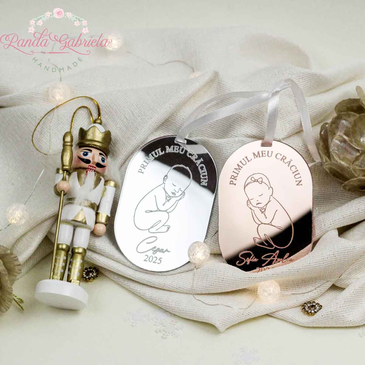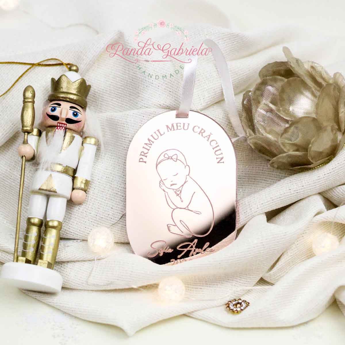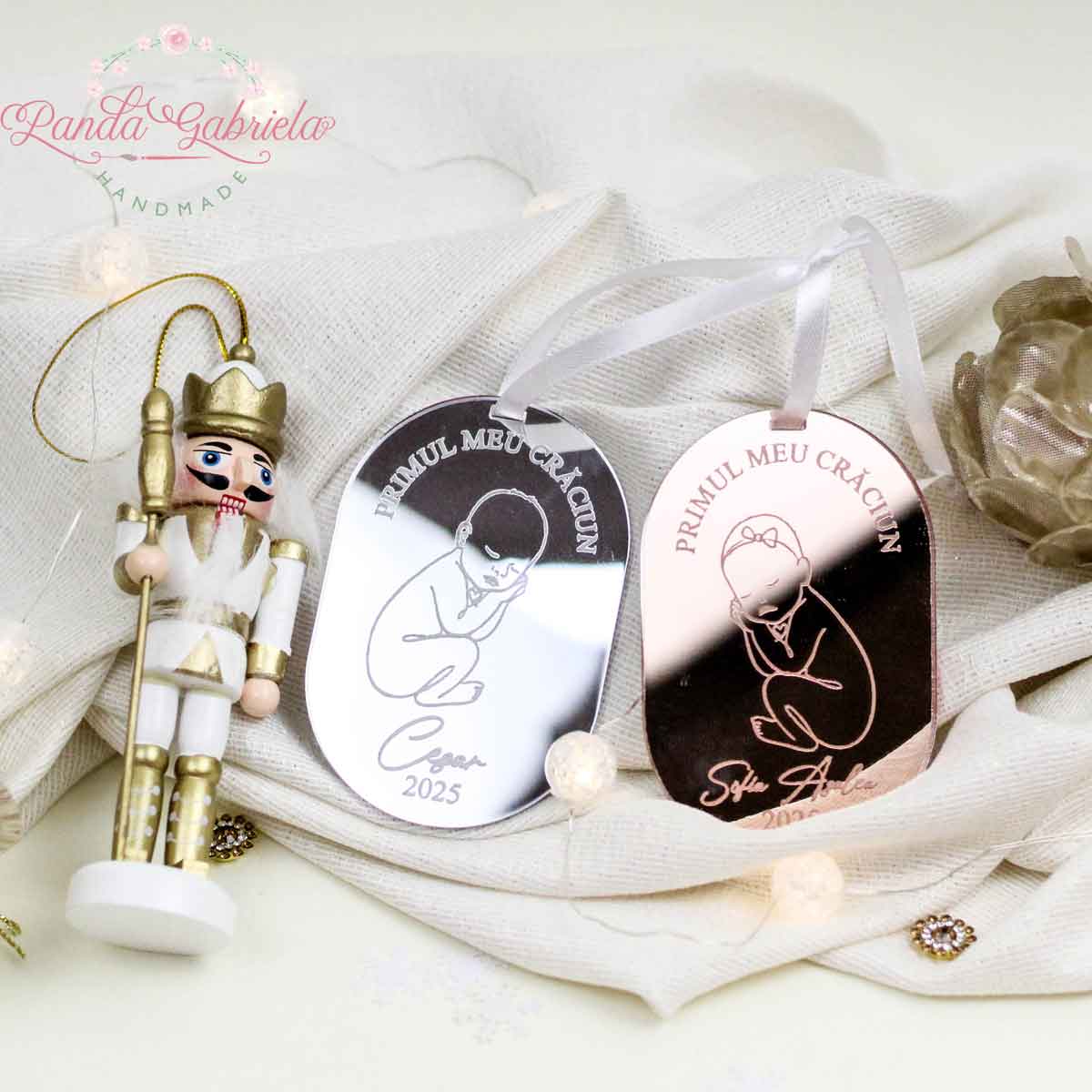 Celebrează magia primului Crăciun al bebelușului tău cu Globul Oval „Primul Meu Crăciun”, o decorațiune elegantă și memorabilă, creată pentru a păstra vie amintirea acestui moment unic. Realizat din plexiglas oglindă de înaltă calitate, disponibil în două variante rafinate – argintiu și rose gold – acest glob adaugă bradului o strălucire aparte și o notă de emoție pură.