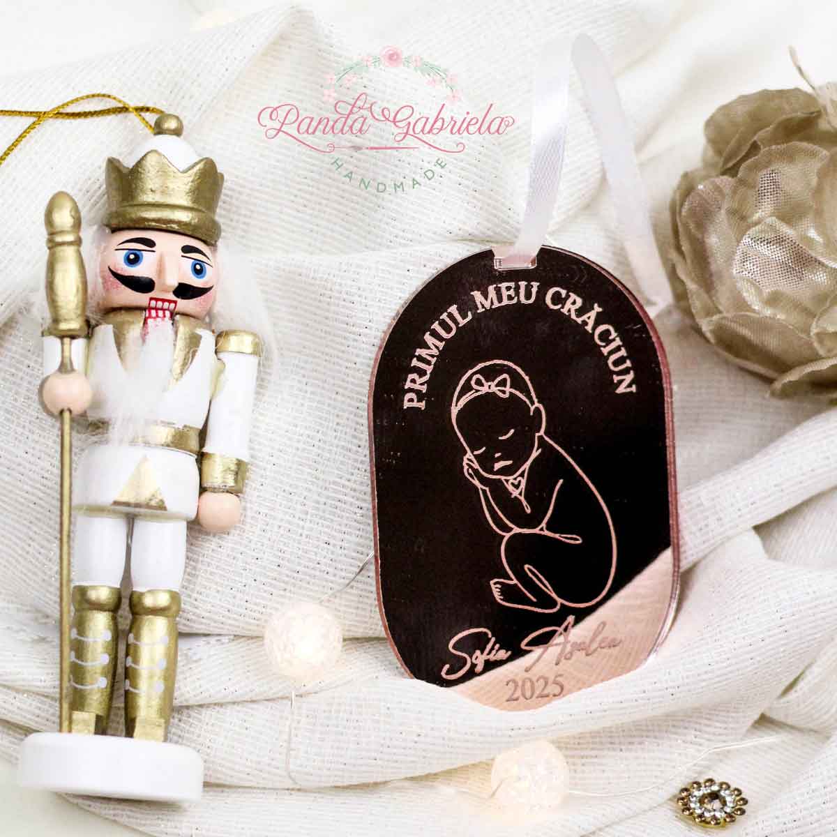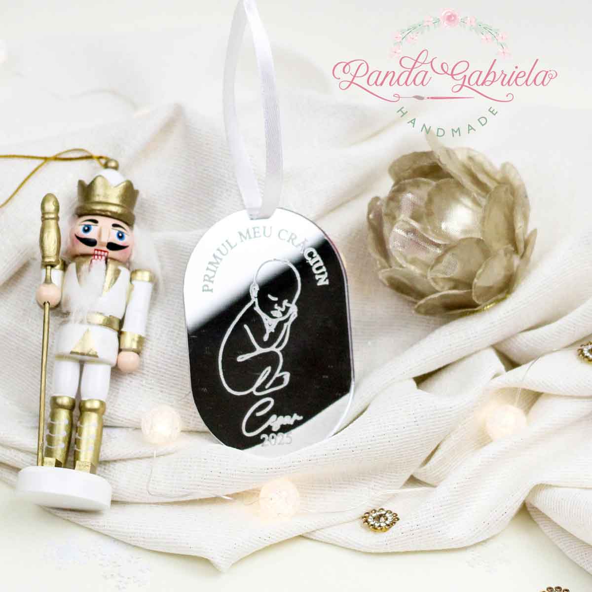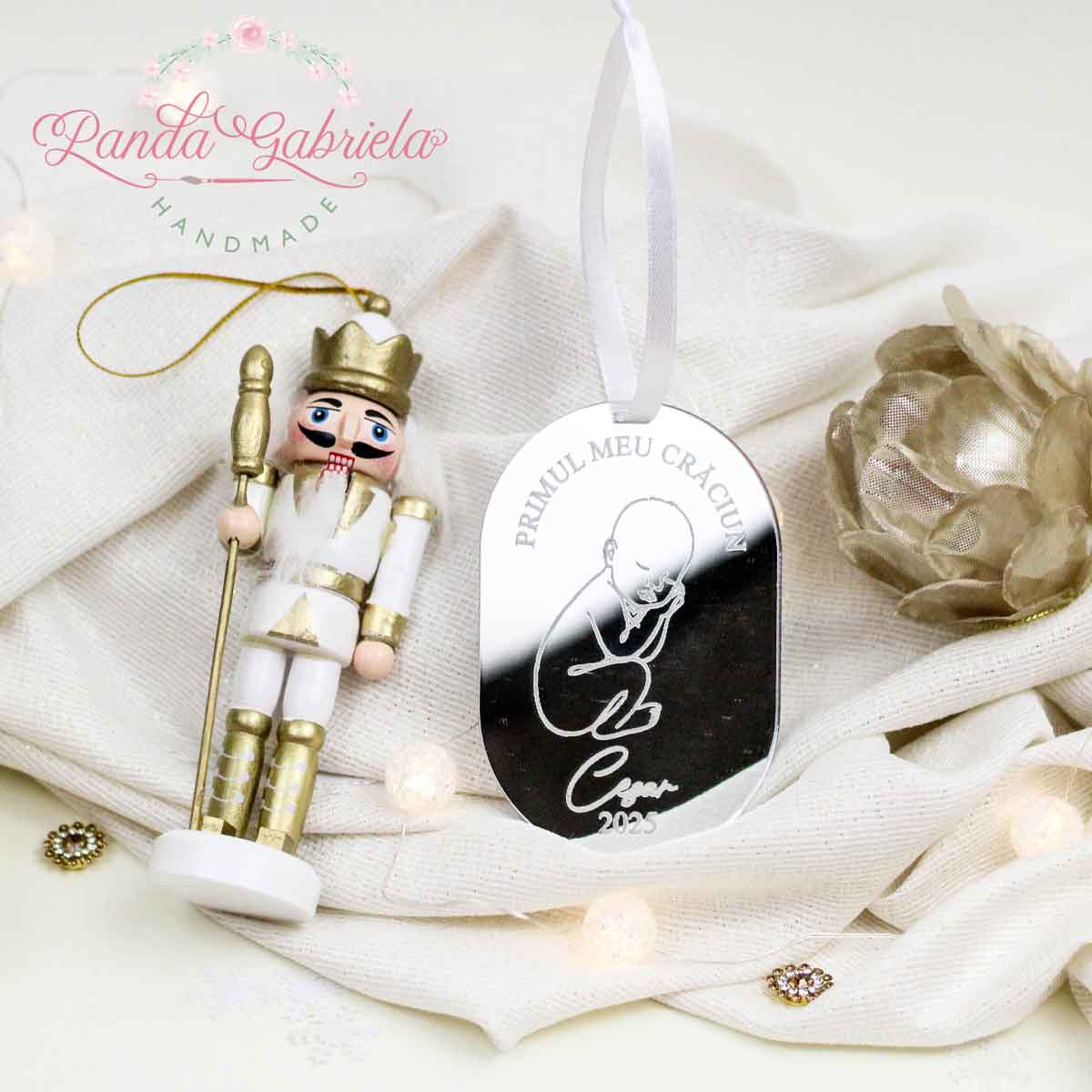 Celebrează magia primului Crăciun al bebelușului tău cu Globul Oval „Primul Meu Crăciun”, o decorațiune elegantă și memorabilă, creată pentru a păstra vie amintirea acestui moment unic. Realizat din plexiglas oglindă de înaltă calitate, disponibil în două variante rafinate – argintiu și rose gold – acest glob adaugă bradului o strălucire aparte și o notă de emoție pură.