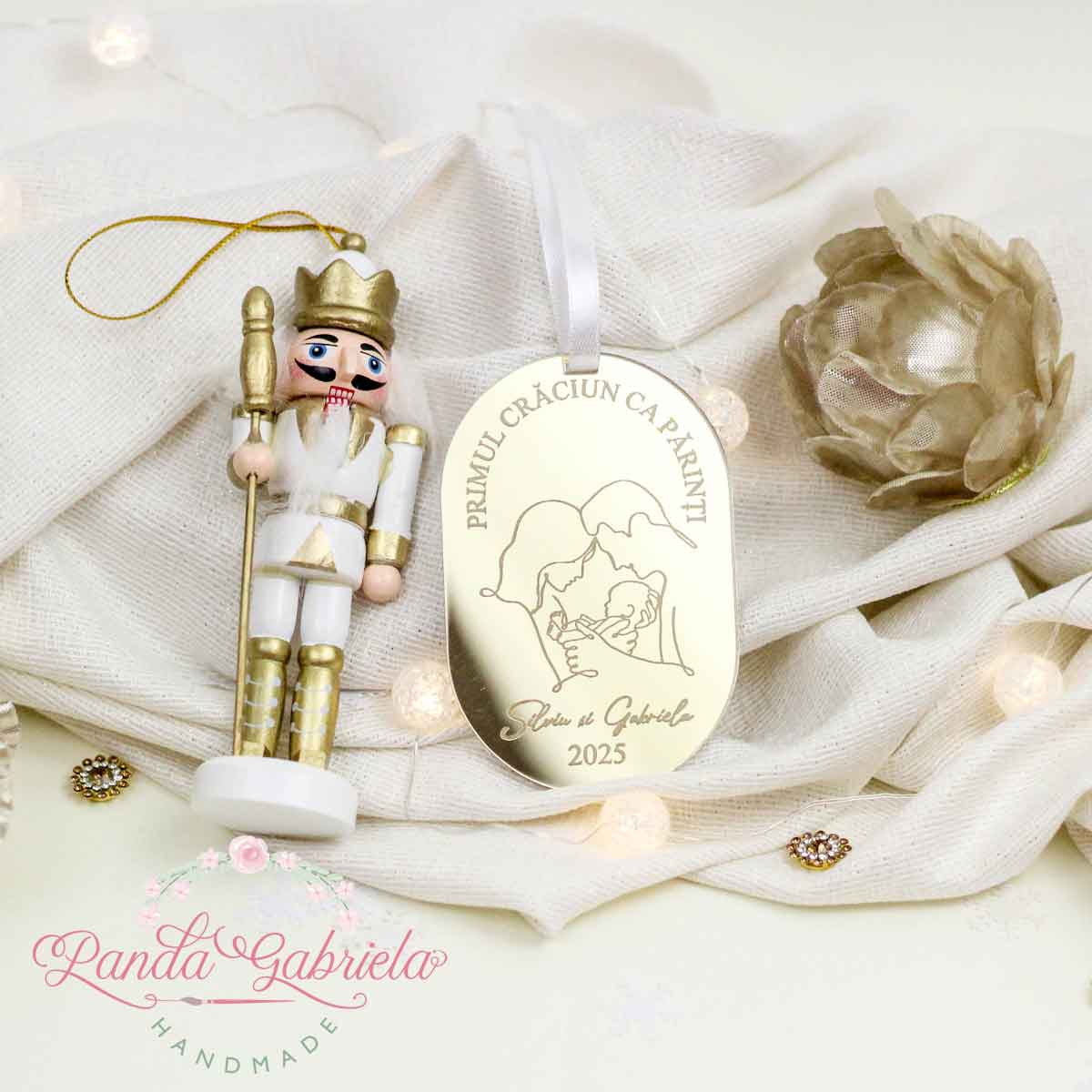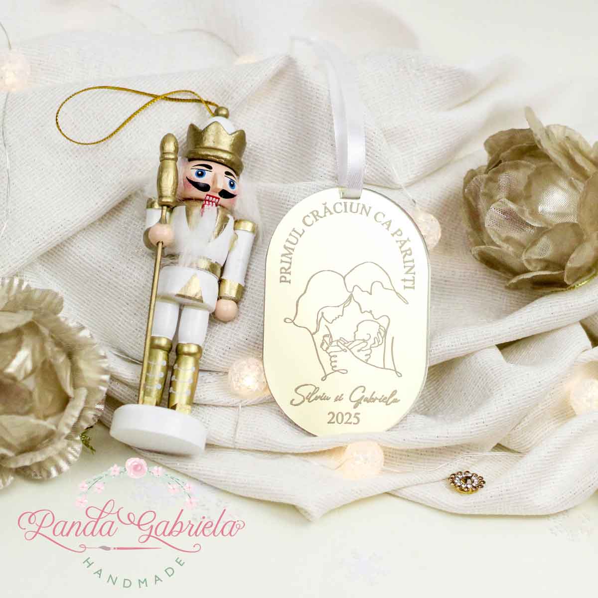 Personalizarea cu numele părinților și anul face ca ornamentul să devină o dovadă a începutului unei noi povești de familie. Fiecare detaliu este gândit cu grijă, pentru ca rezultatul final să fie nu doar o decorațiune de brad, ci o amintire care va rămâne în inimile voastre pentru tot restul vieții. Ideal pentru propria familie sau pentru a fi oferit cadou unor proaspeți părinți, acest glob este o alegere rafinată și încărcată de sentiment.